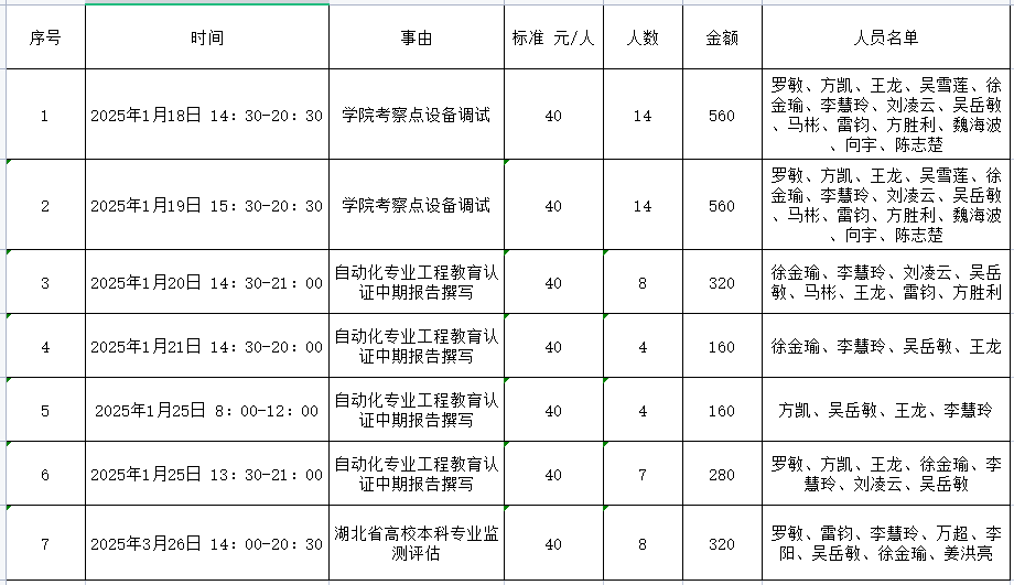 根据学校相关规定,现将我院2025年1月至2025年3月期间,部分教职工因加班、值班产生的误餐费情况公示如下: