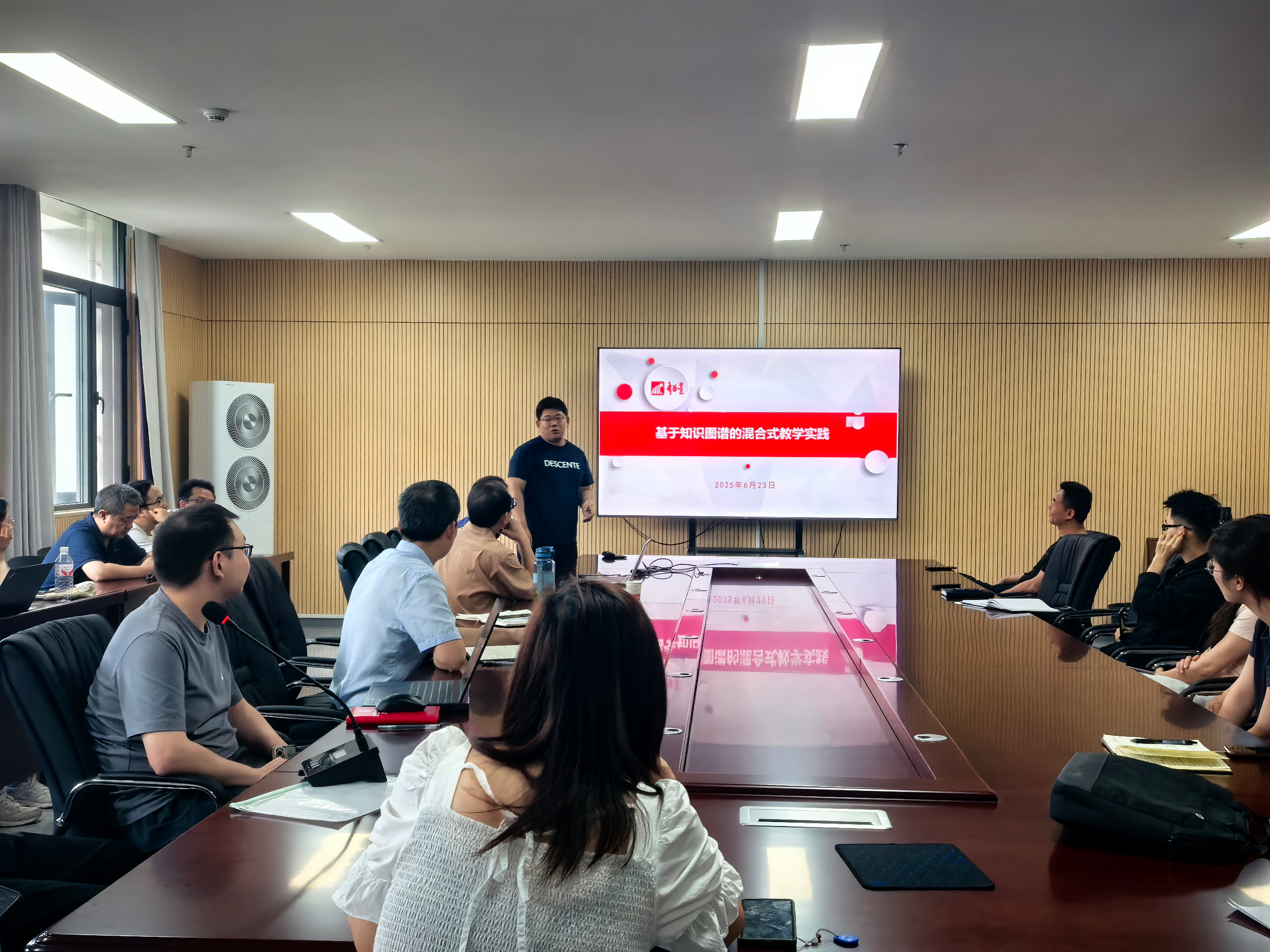 首先是来自信息技术中心的周骁老师带来了极具实操性的《基于知识图谱的混合式教学实践》专题分享。他首先展示了如何利用AI技术高效构建学科知识图谱,将原本零散的知识点转化为可视化、关联化的智能知识网络,为精准教学导航。随后,他重点演示了依托知识图谱开展混合式教学的具体路径:如何基于图谱智能推荐学习资源、设计分层任务、实现学情实时监测与预警。在“讲解智慧课程”环节,周骁老师谈到,什么是智慧课堂,其主要特征是什么,引导教师们高重视“泛雅杯”全国高校智慧课程设计大赛、以及超星杯第七届全国高校混合式教学设计创新大赛,最后教师们利用超星平台工具,演练了智能生成课设、创建作业库等核心技能,让抽象的技术理念迅速转化为教师们可上手操作的实用教学生产力。