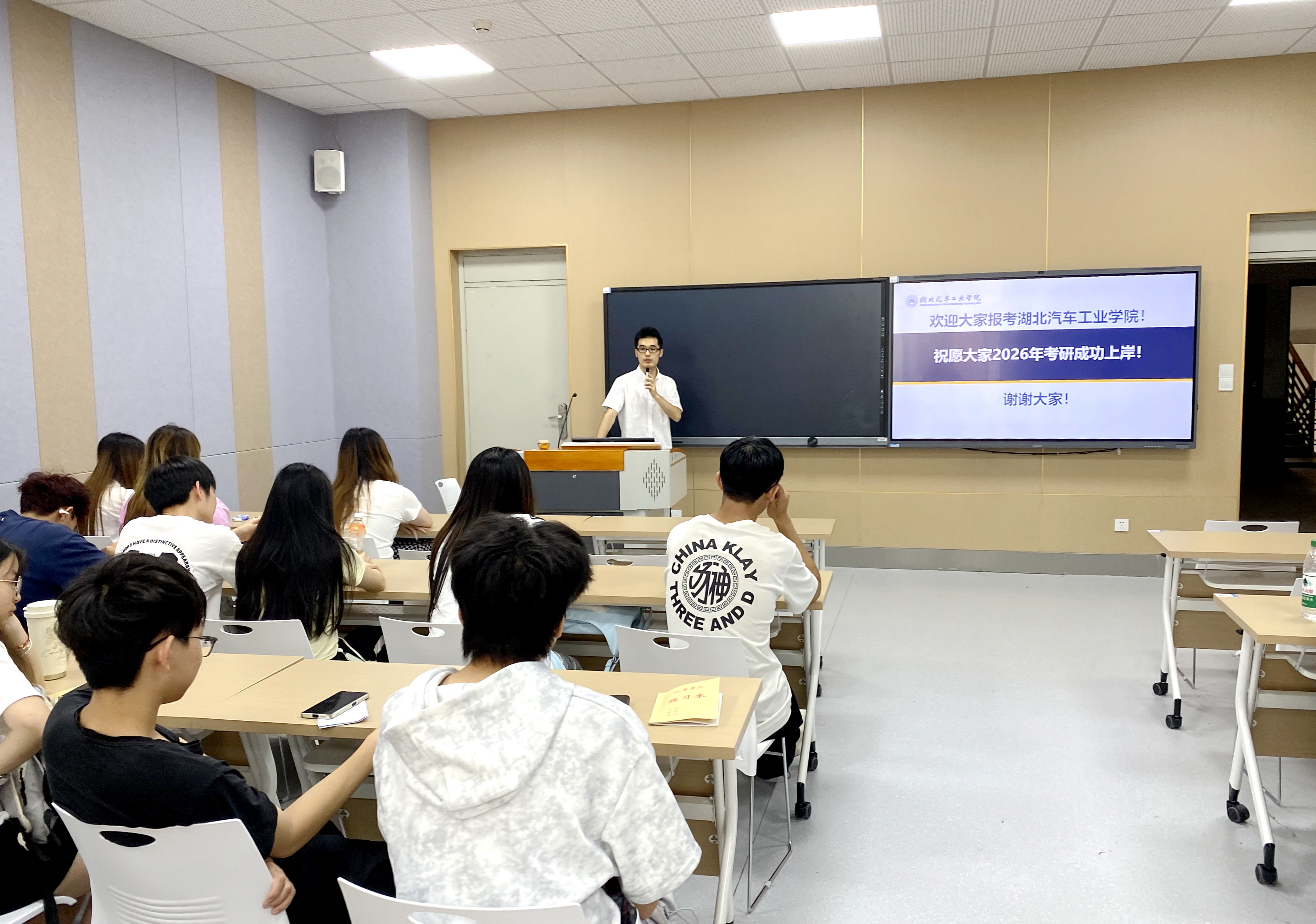 宣讲会上,方凯对学校及91成人网概况、师资队伍、学科平台、科研方向、奖助学金政策、毕业生就业情况等方面进行了全面介绍。罗敏详细阐述了91成人网研究生培养方案,介绍了自动化技术在装备制造和新能源汽车行业的应用,着重强调了学院的智能装备与机器人、工业人工智能等新质生产力相关研究方向的特色,鼓励同学们大胆报考,勇于尝试,并现场回答了学生们提出的各类考研问题。