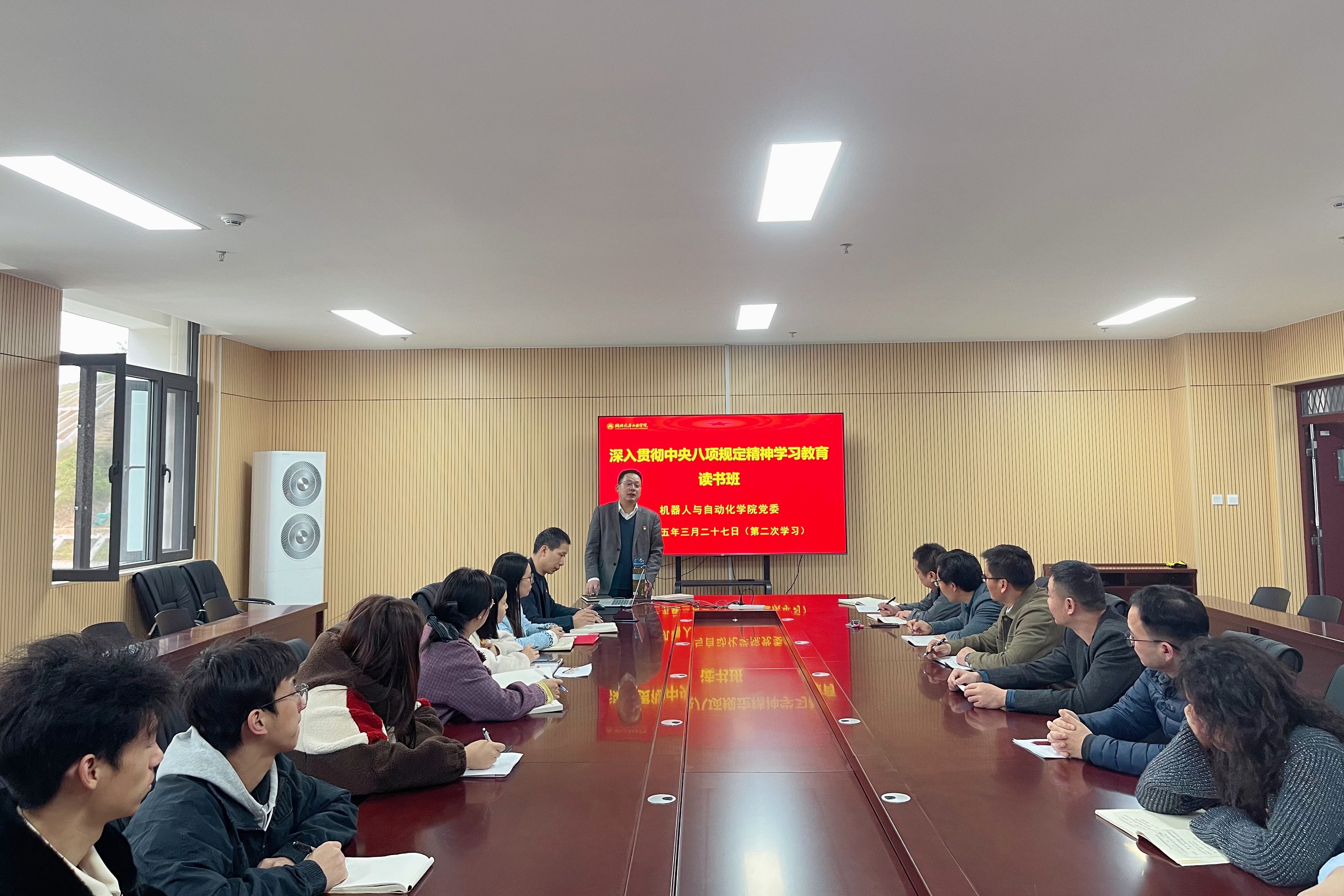 (文 罗晓瑞)为扎实开展深入贯彻中央八项规定精神学习教育,91成人网3月27日在强国楼六楼会议室开展学院党委读书班第二次集中学习(扩大)。学院党委书记周鹏主持学习,学院全体党员参学。